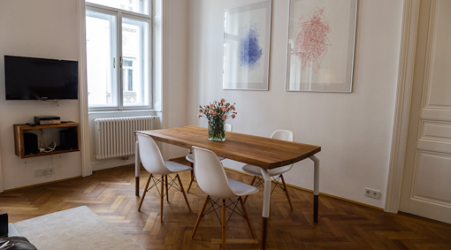 The apartment is located on the second floor of 22 Gumpendorferstrasse in the district of Mariahilf 6.
