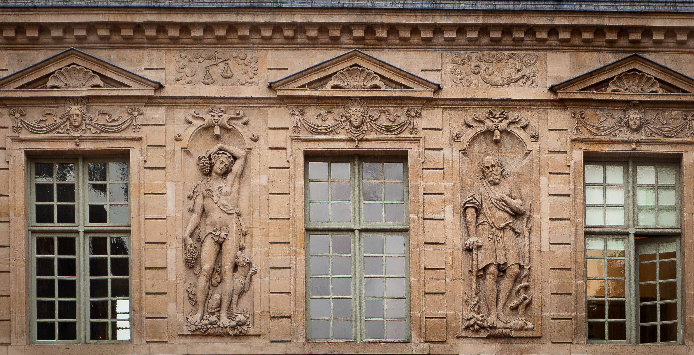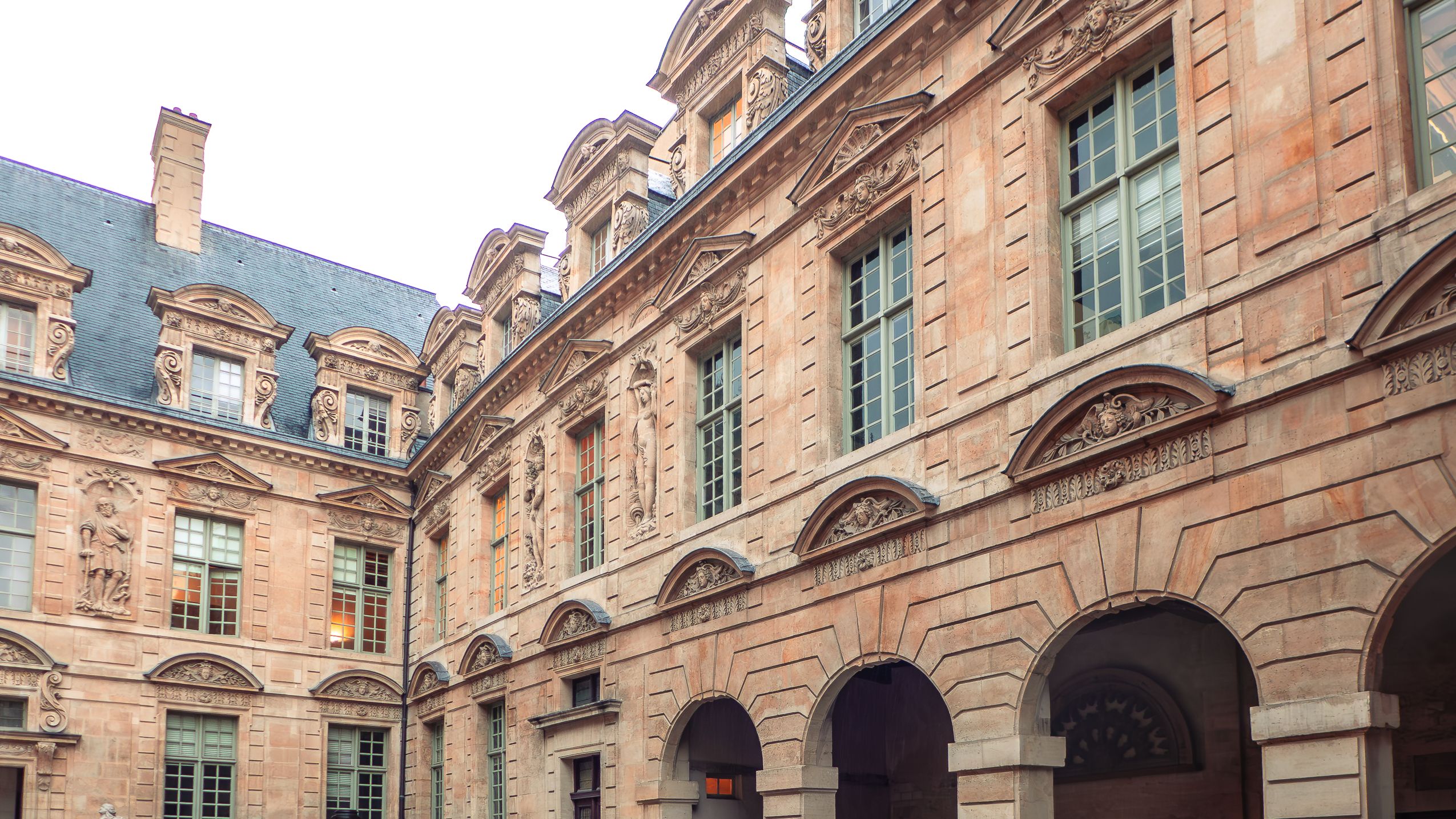The courtyard and garden facades of L’Hôtel de Sully feature an elaborate decorative scheme, characterized by a blend of Mannerist style and Renaissance influences.