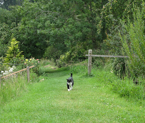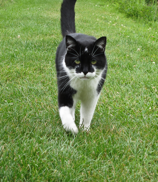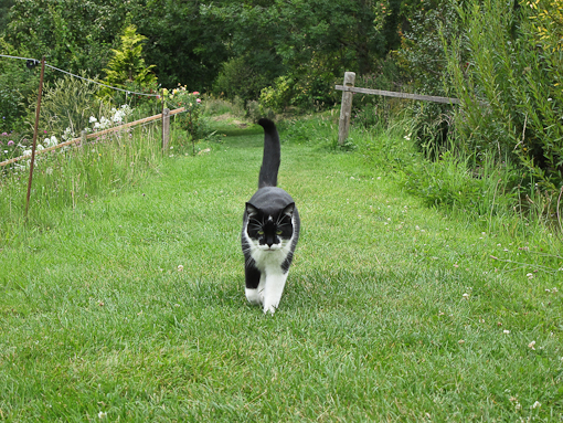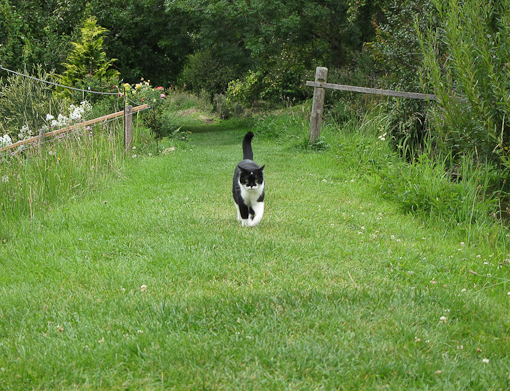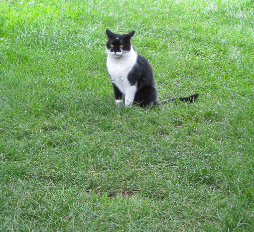 Clearly, this cat wanted to let us know that it owns the green carpeted passage as it slowly paced toward us, stone-faced.