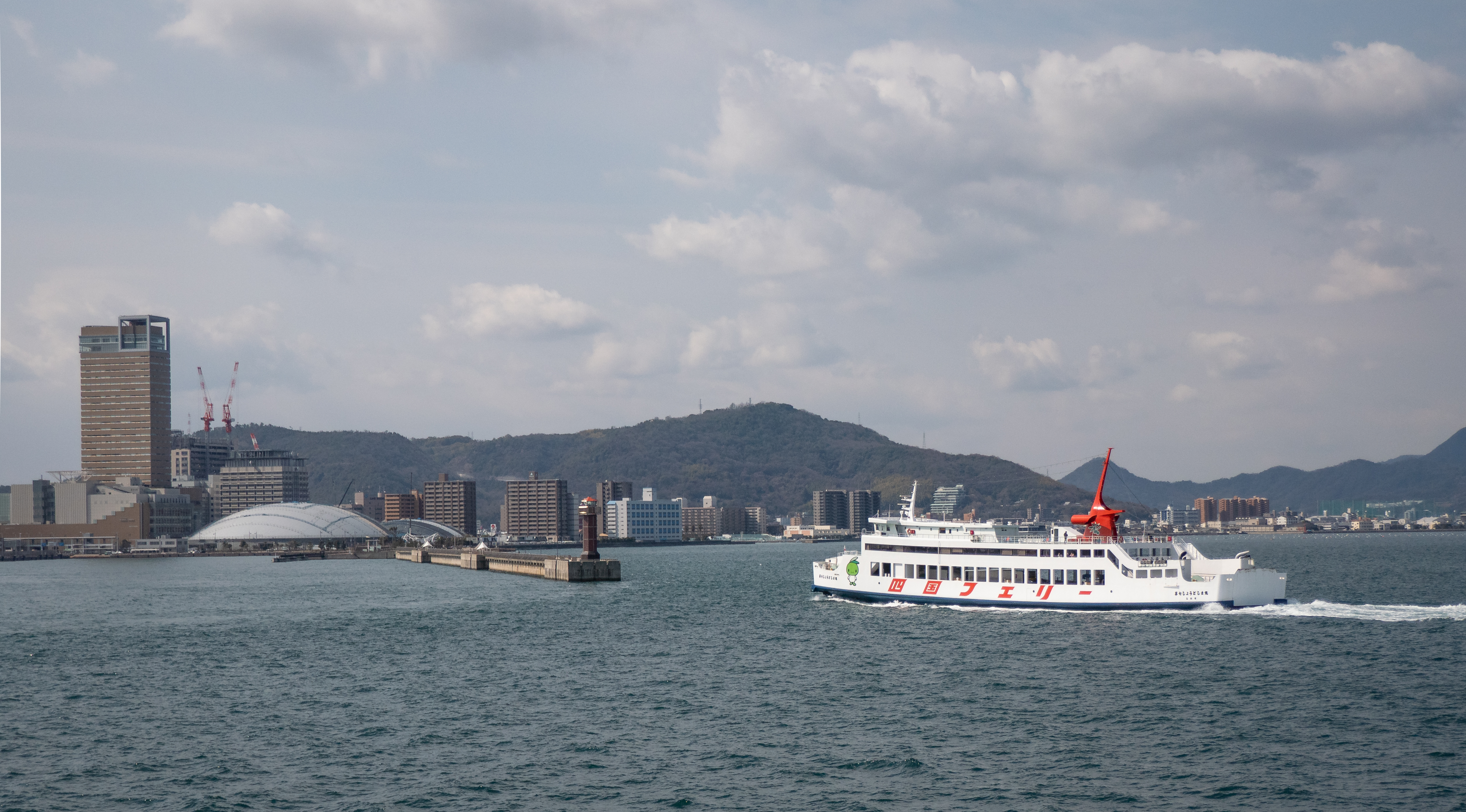 The weather on this day in late March was fine but it was still chilly. We departed from Takamatsu 高松 on the Shikoku side. The ferry which also carried cars took less than 1 hour to reach the island.