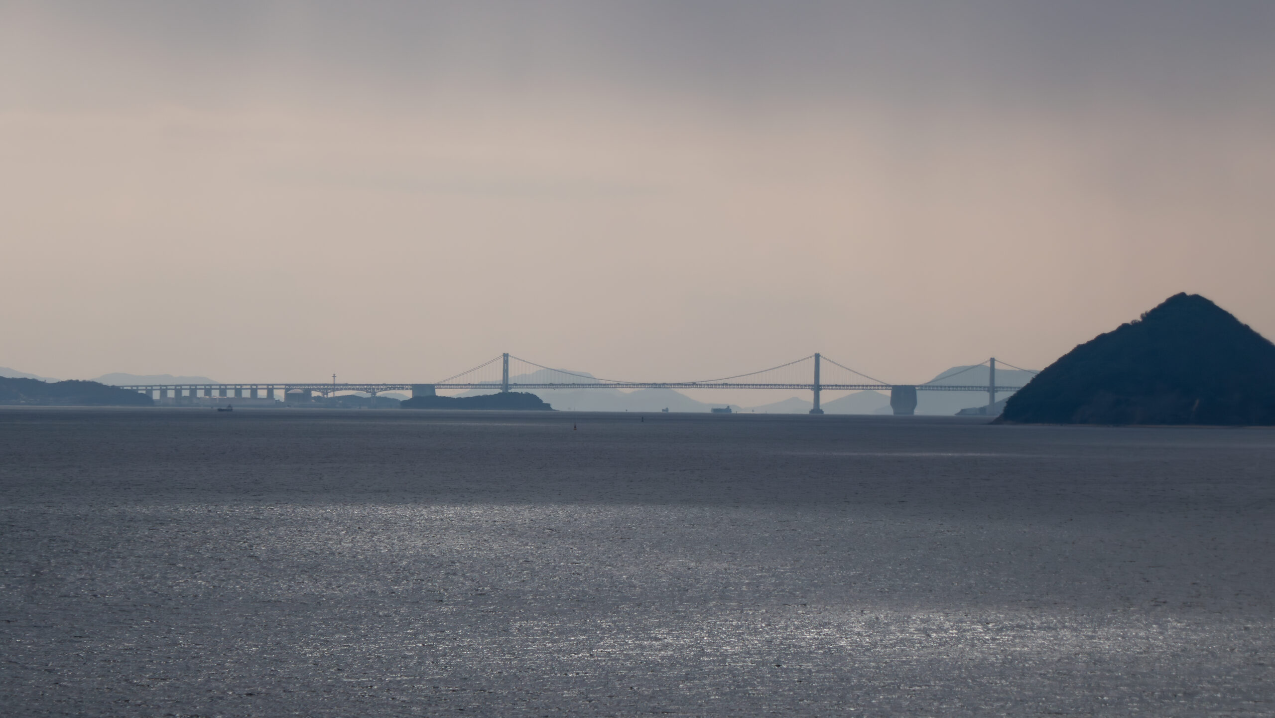 Historically, situated on a strategic trade route, the island developed a powerful navy under the ruling clan in the 15th century. Subsequently, many islanders engaged in the lucrative marine cargo trade. The Seto Ohashi Bridge 瀬戸大橋, a bridge for vehicular and rail traffic opened in 1988, connects Shikoku to Honshu.