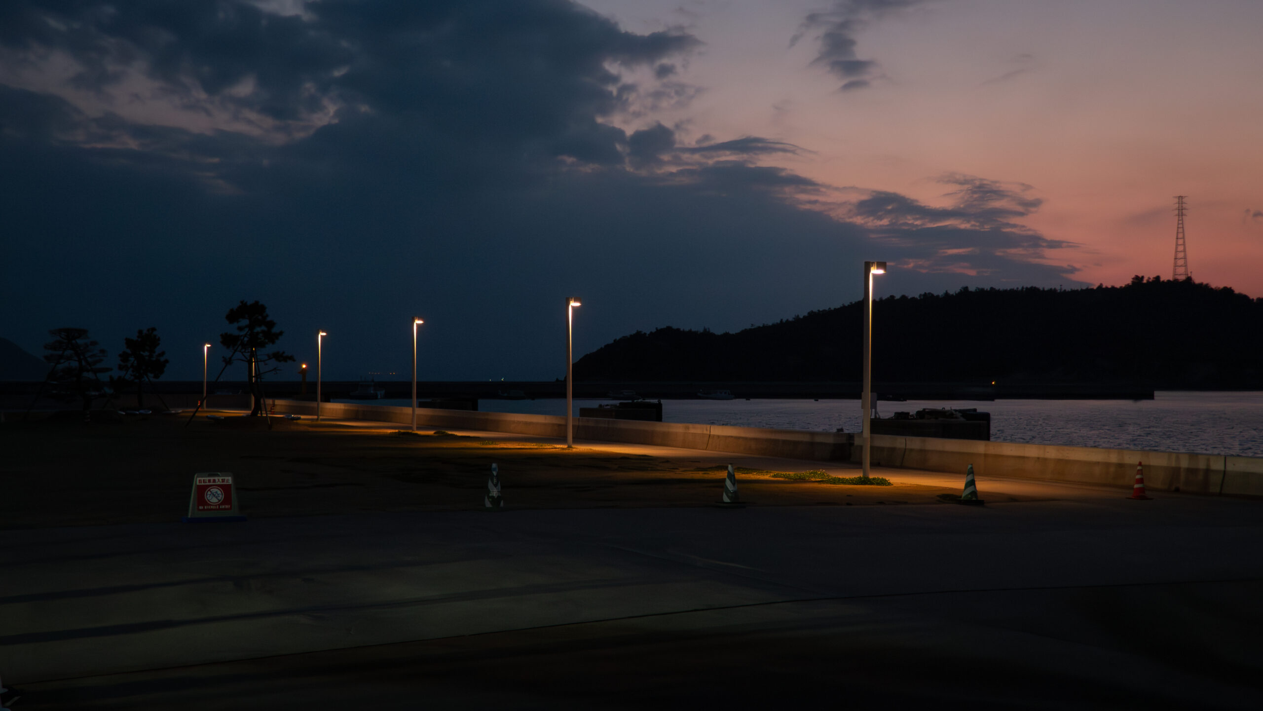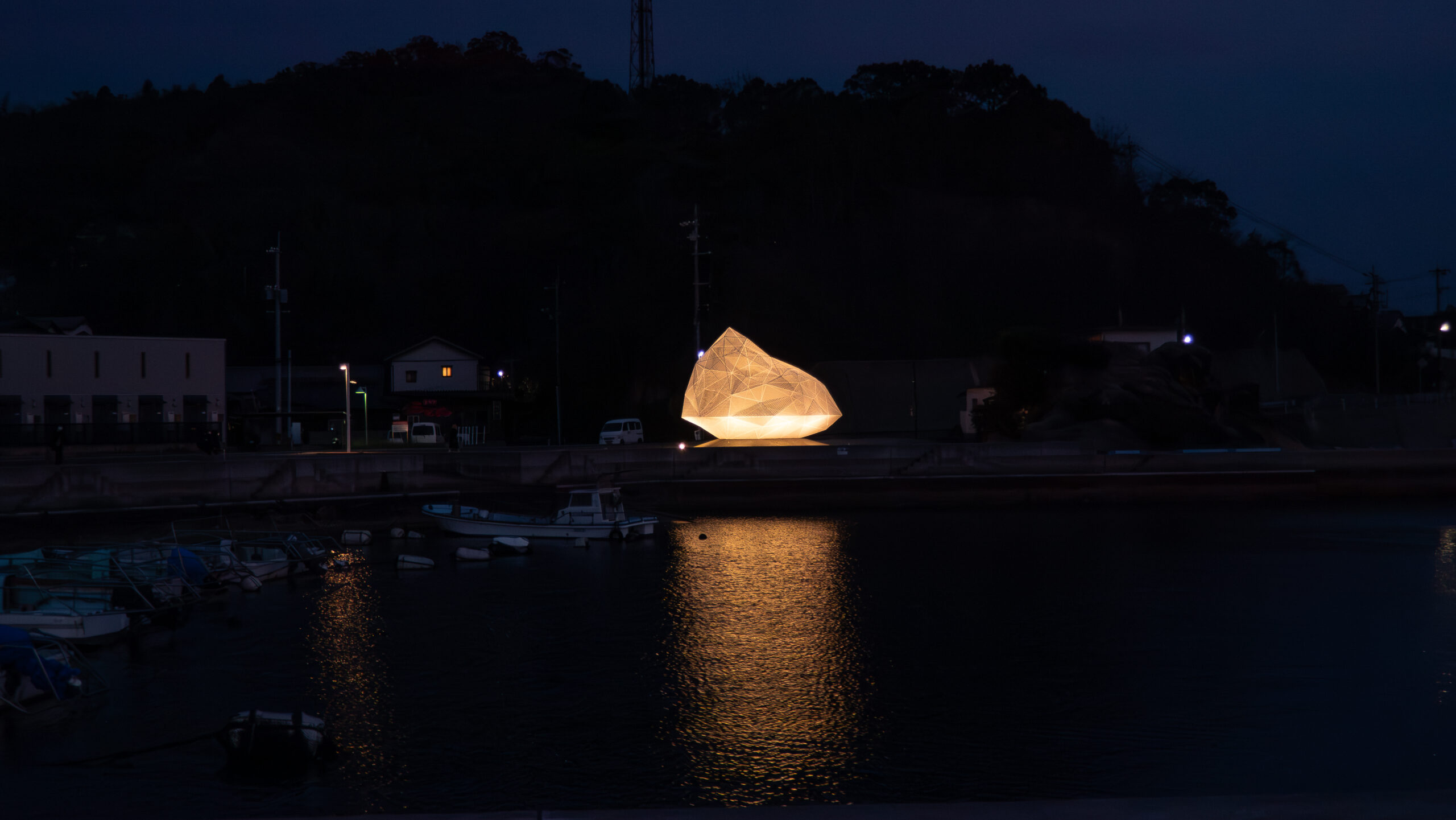 The Naoshima Pavillion in Miyanoura at night – designed >> in 2017 by Sou Fujimoto Architects.