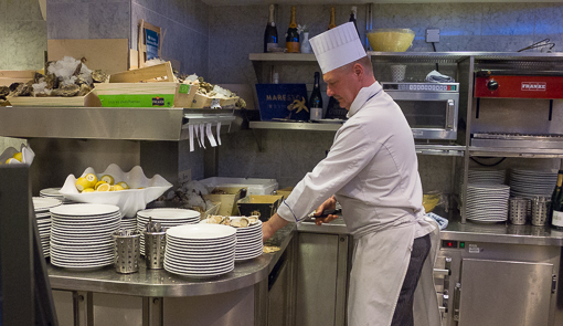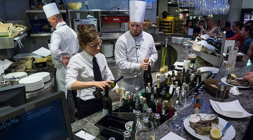 The place was packed and the staff was very energized. One guy’s job was mostly opening oyster – he used a long hinged blade fixed onto the counter rather than a small shucking knife. He had to be fast. See the orders in front of him.