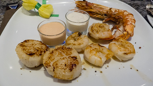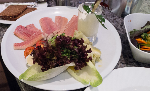 The variety of oysters on the menu was extensive – originating from Scottish waters (which was the tastiest in our opinion) to French Atlantic coast, around Sylt, and the Mediterranean, etc. We had a sampler of six different kinds.