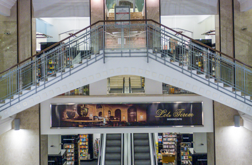 After entering the Alexandra Bookstore on the ground floor you’ll find a pair of escalators which bring you up to the first floor, and usher you directly in front of the Lotz Hall (Lotz-Terem).