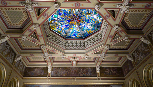 This man was a master of his craft, and the Hungarians loved him for it. While the rest of the building has been more or less whitewashed, the Lotz Hall has been faithfully restored and brought back to its former glory. It was the former Teresa City Casino ballroom.