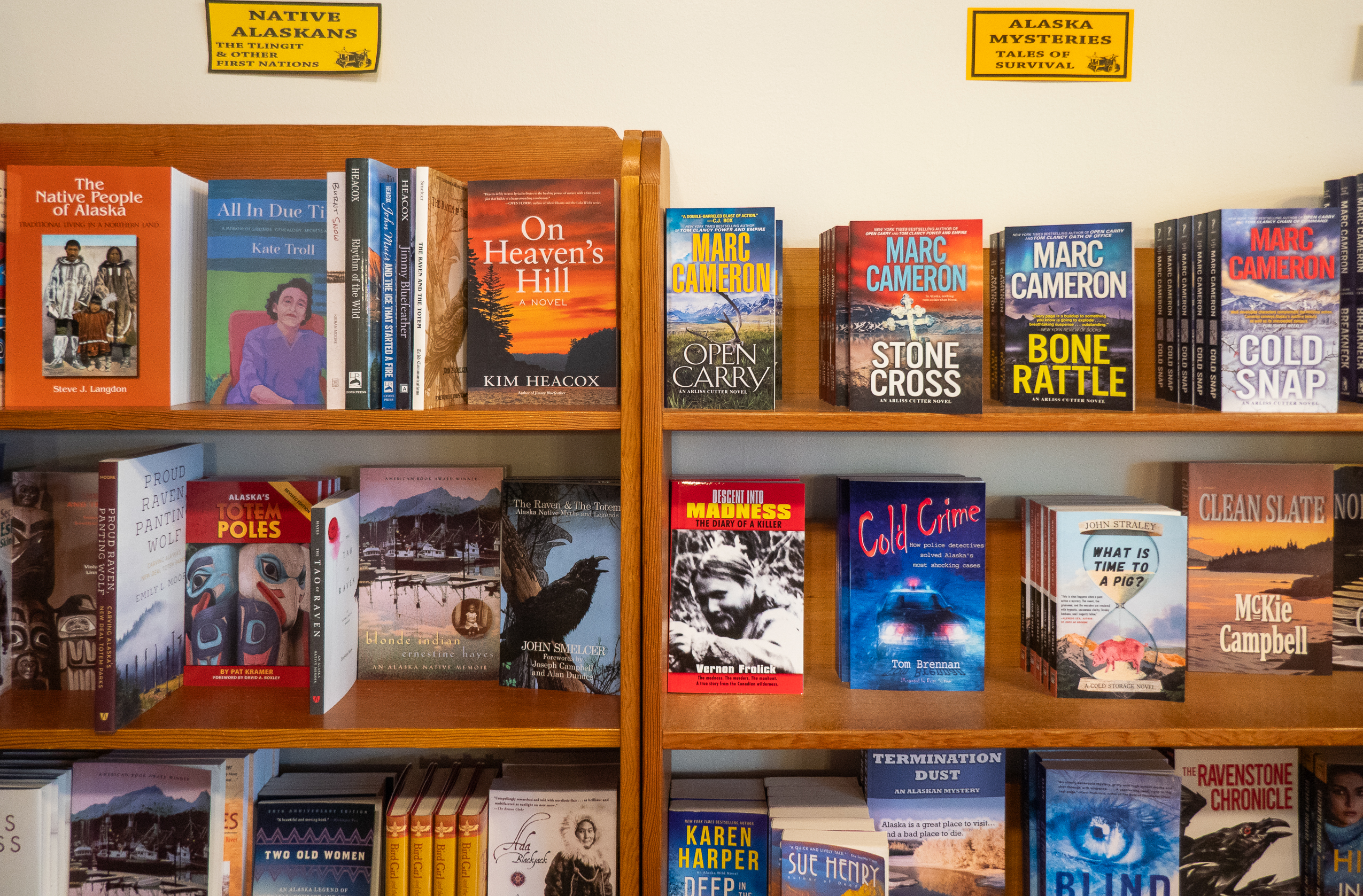Sections are dedicated to native Alaskan authors and their stories as well as Alaska mysteries (for example, the Arliss Cutter series by Marc Cameron, which is based on a deputy US marshal character in Alaska).