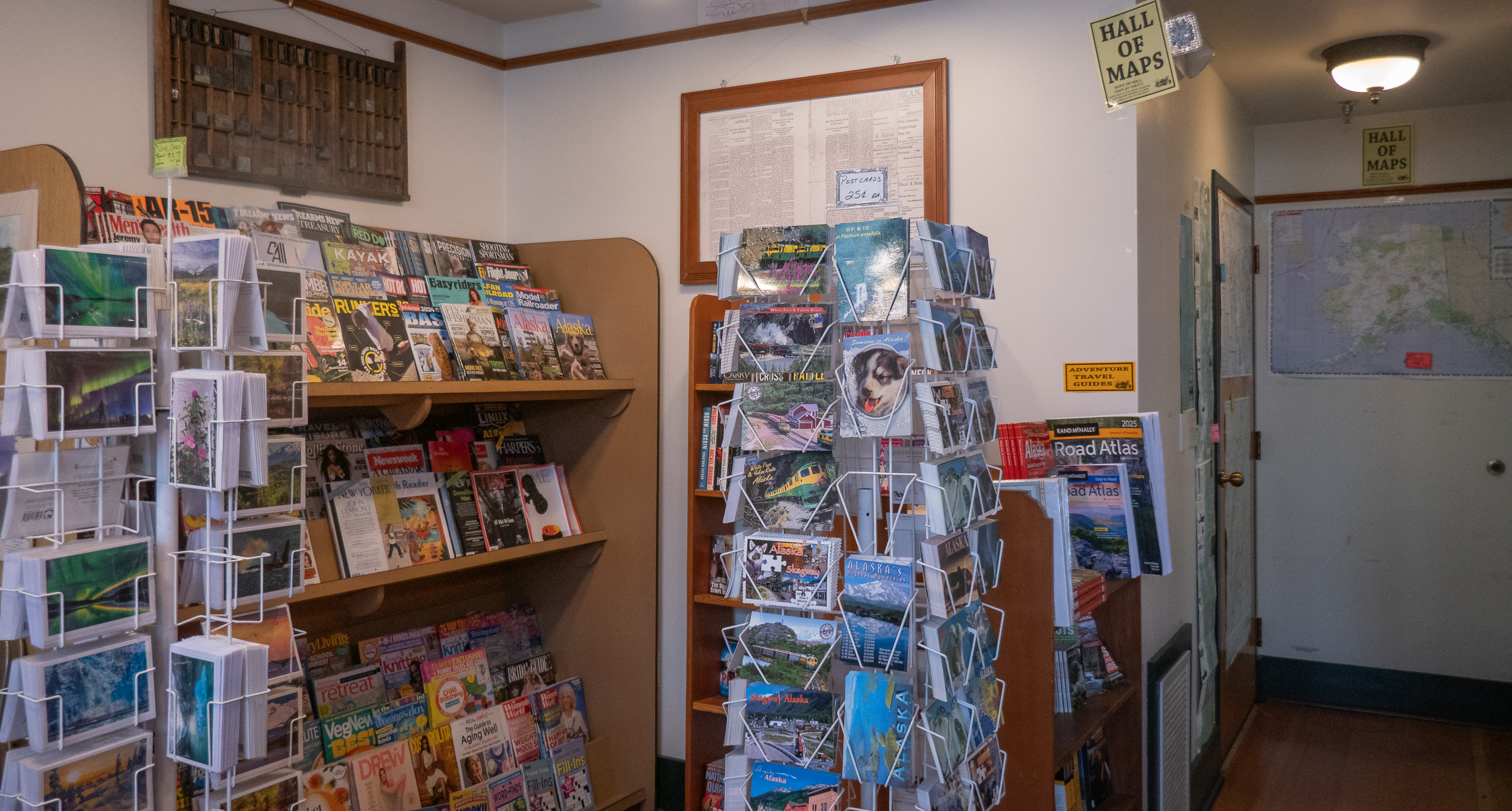 The bookstore specializes in Alaska–Yukon related titles—books, postcards, maps, calendars, journals, magazines—you name it.