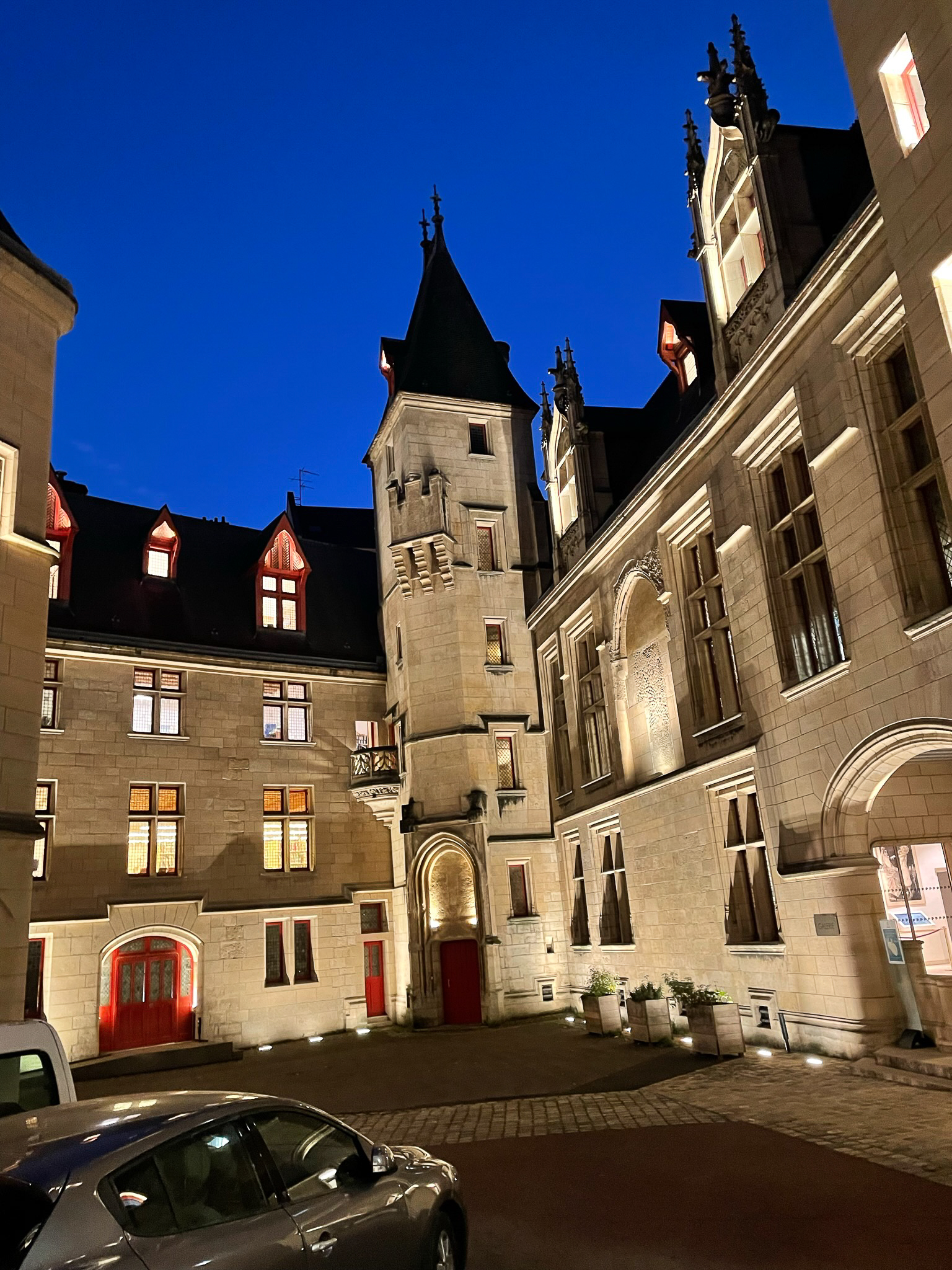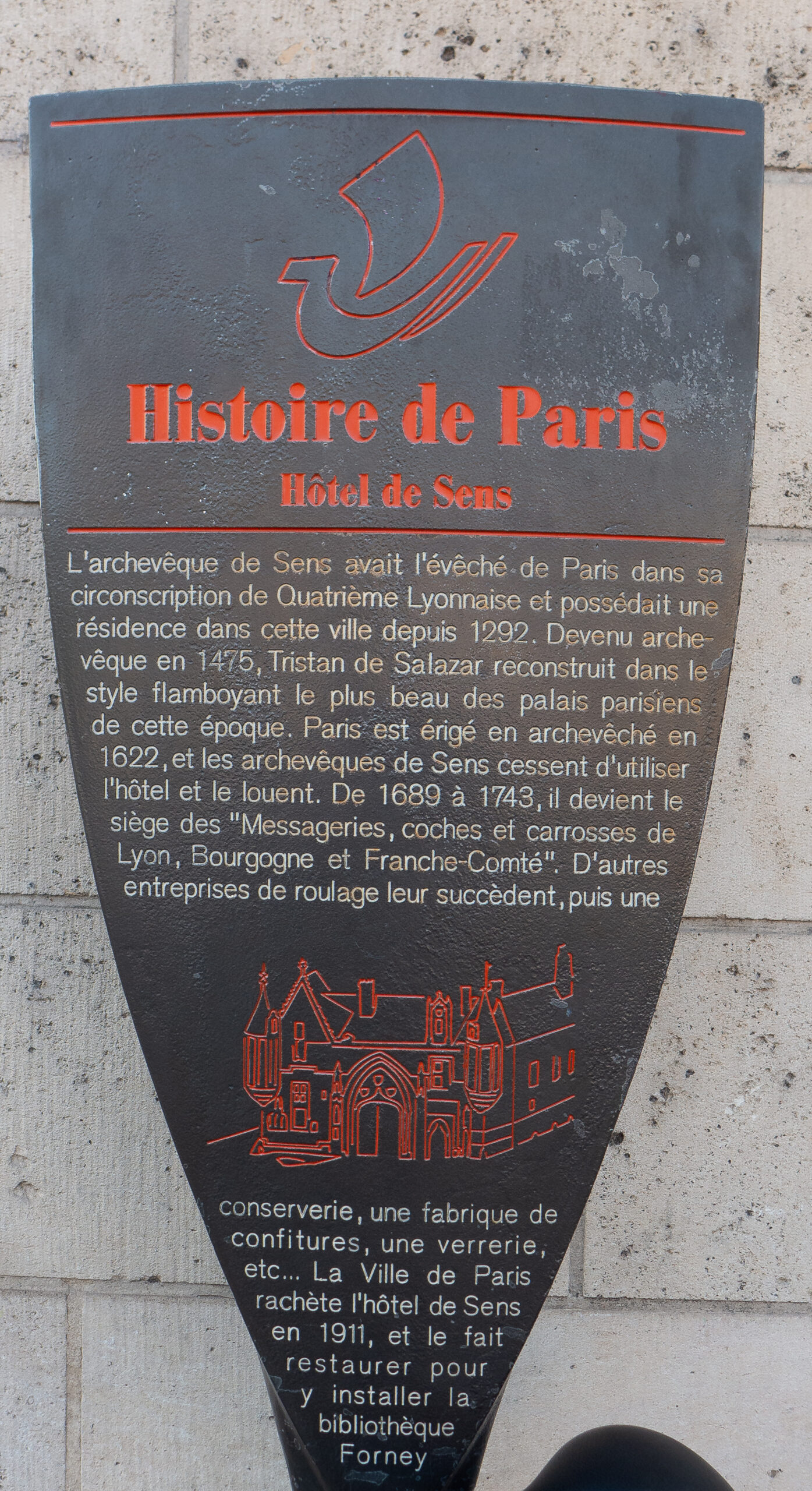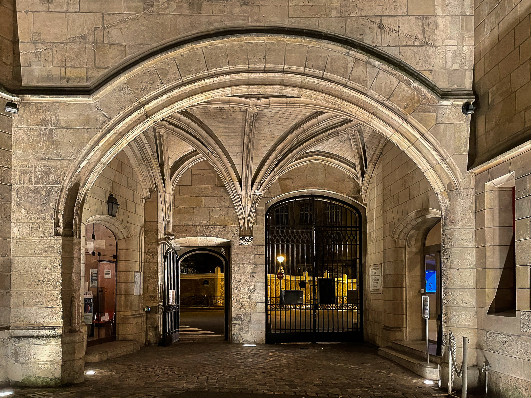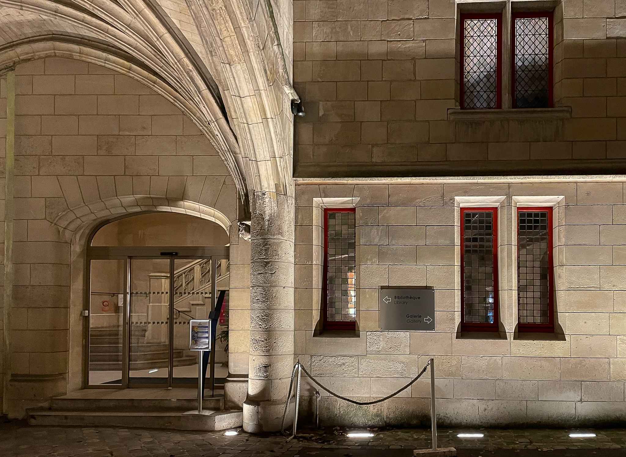 During my visit which was in winter, sunset occurred at around 5pm. Consequently, I often found myself at the library after dark, which provided an opportunity to capture these dramatic photos of the Hôtel de Sens.