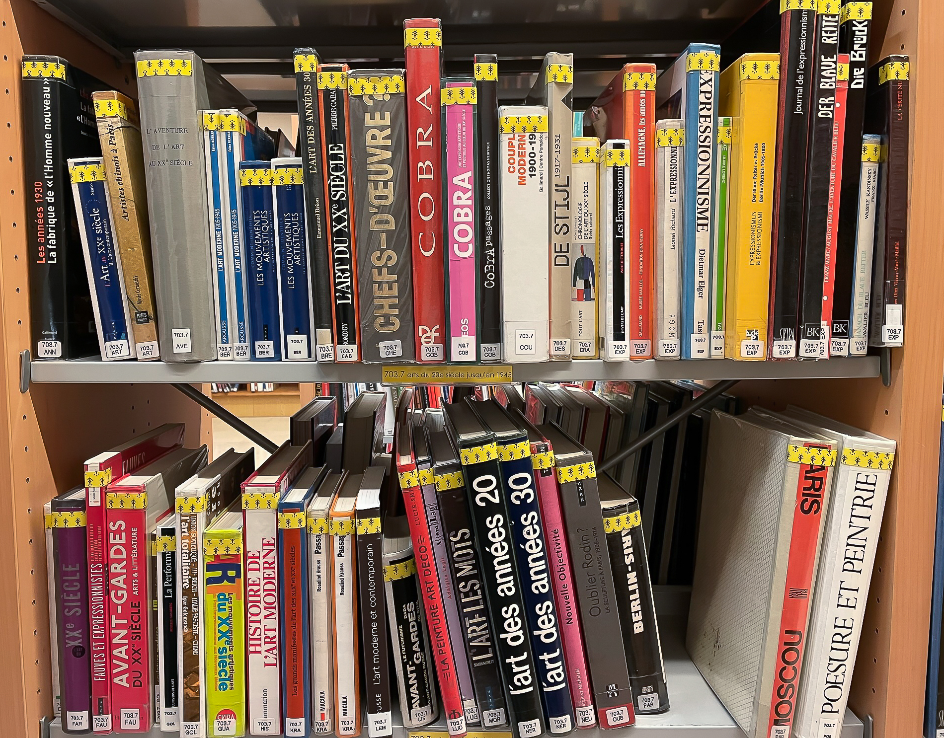 The library houses over 200,000 documents, including books, periodicals, catalogs, and trade journals, focusing on areas like graphic arts, crafts, interior design, and fashion. Some materials are available for on-site consultation only, others can be borrowed. Click on the photo for a close-up view.