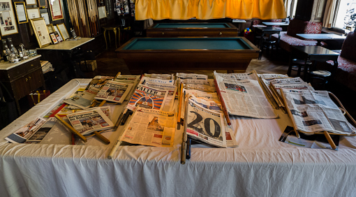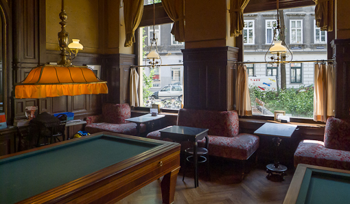 The English has billiard table in public houses (pubs) which may serve a similar social gathering function as the Viennese cafe, except that the conversations in a pub are likely to be driven more by alcohol than by the news. Billiard or pool tables in cafe are unimaginable in the US and Britain.