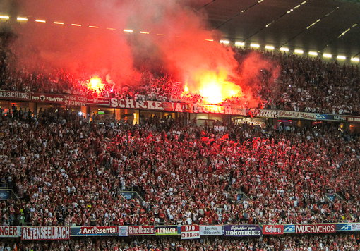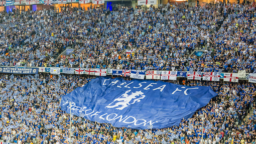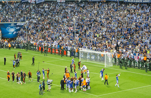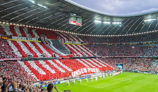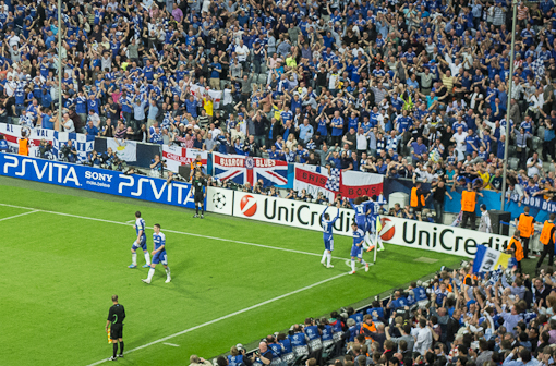 Chelsea was on our right. The Munich fans won the visual display of support with better props and more fans participating than the other side.