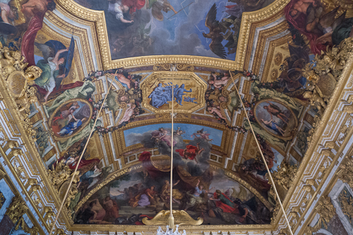 This ceiling painting in the Hall of Mirrors had figures climbing come out of the gilded frame.
