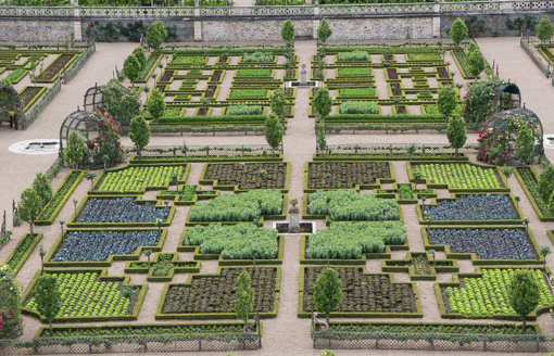 From the top of the turret, one can see all the formal gardens in their complex geometric shapes.
