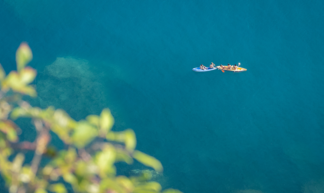 Below the cliff, there is a small spot on the rocks for swimming and landing small boats. The water was so clear that the rocks near the shore were clearly visible.