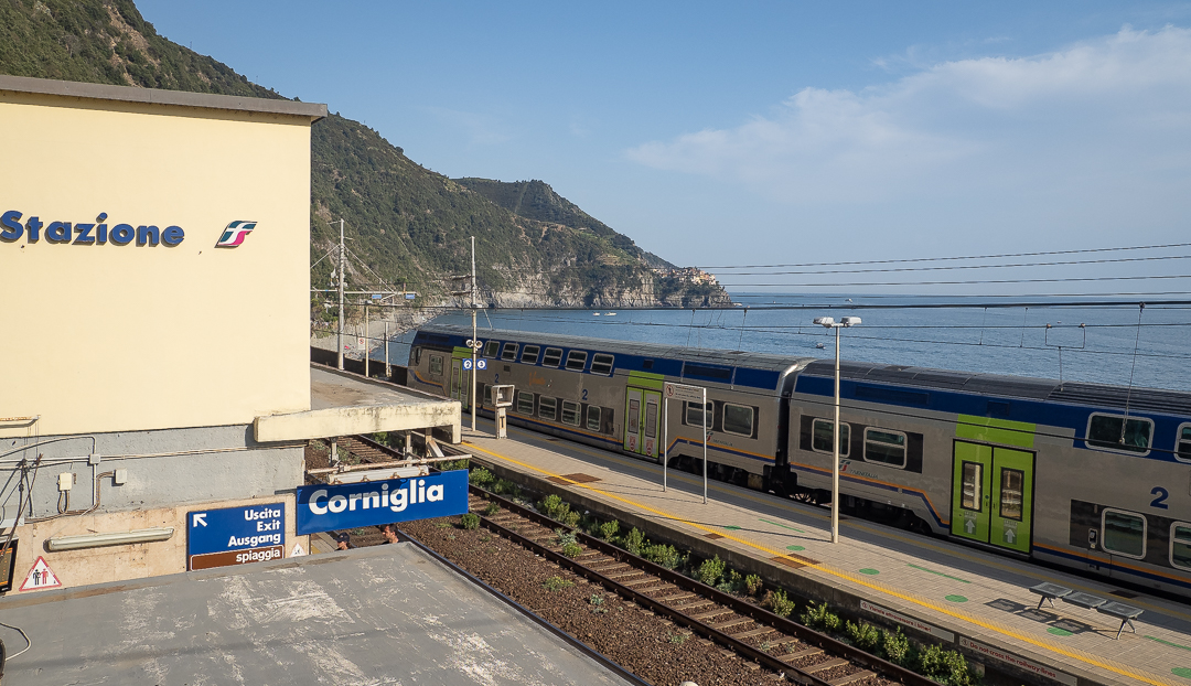 The five villages that give the area its name are, from north to south: Monterosso al Mare, Vernazza, Corniglia, Manarola, and Riomaggiore. Access to the villages by car is limited. Given the likely hassle with finding parking, we decided to leave our car at the hotel in La Spezia, after our drive from Genoa (click to see earlier post). We took a city bus to the railway station and went by train to one of the five villages: Corniglia.