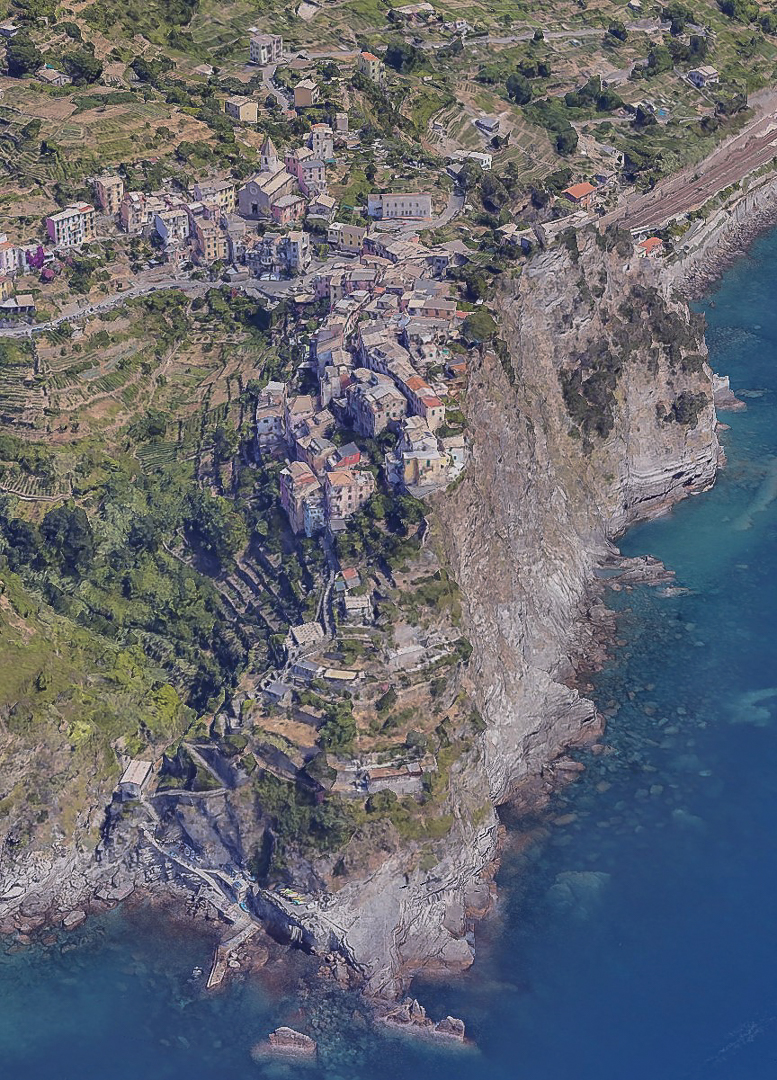 To help visualize how rugged is the terrain, we have included here a bird’s eye image of Corniglia from Google Earth.
