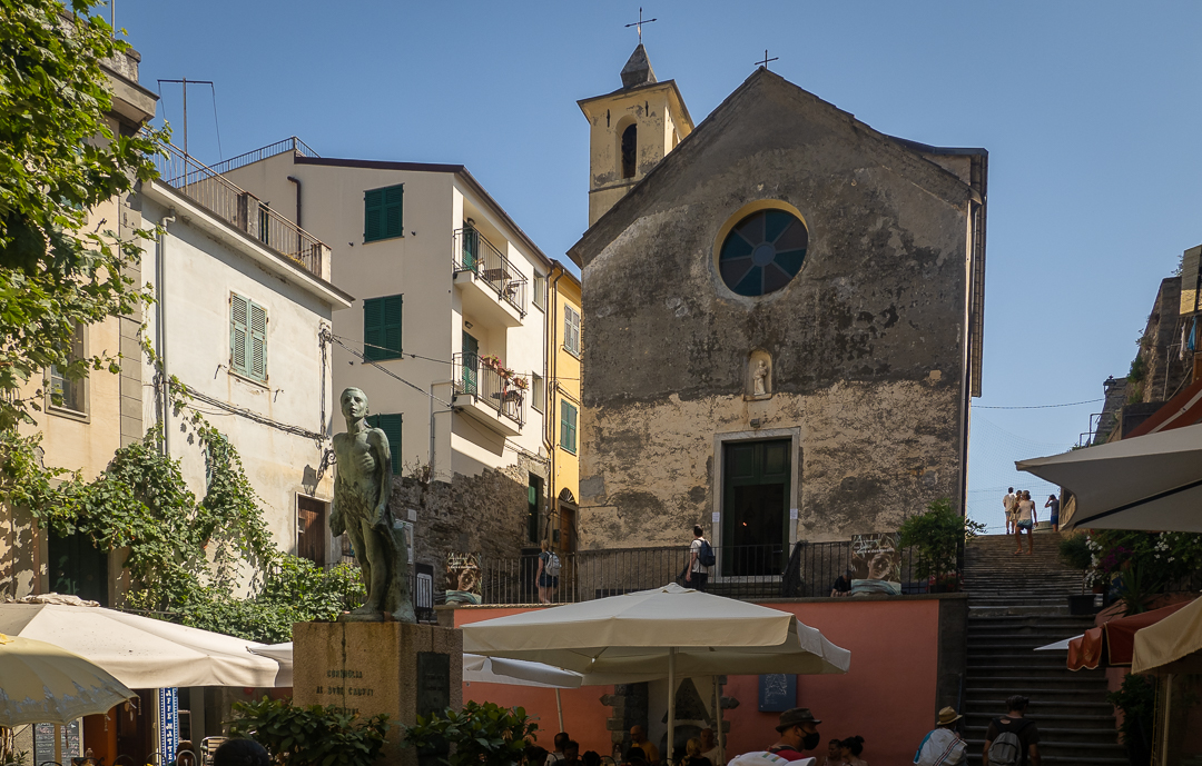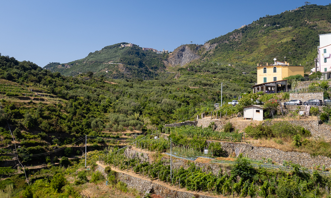 On the right hand side of the image, near top corner is the railway station. The eatery where we had lunch overlooking the terraces was located on the left side of the village. If you squint, you could make out the white umbrellas on the Santa Maria Belvedere high above the cliffs.