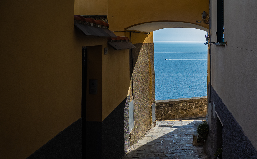 Corniglia, the first village we visited is the only village that is not directly on the water, and it is situated in the middle among the string of five villages. The village is located on a cliff about 100 meters above the sea surrounded by vineyards built on terraces.
