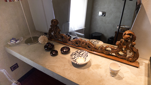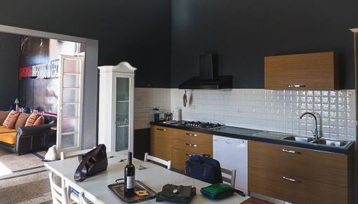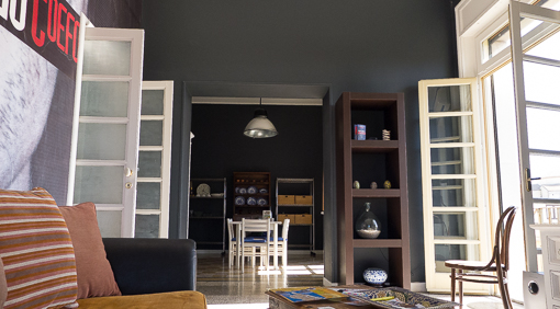 One wall of the sitting area is covered by a giant poster, advertising the re-presentation of the classical greek tragedy – Oresteia (Orestiade di Eschillo; written in 458 BC) by Aeschylus – one of the few complete plays that had survived.