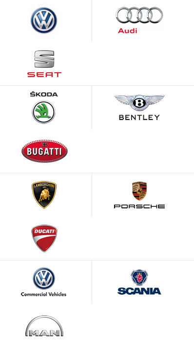 The Volkswagen, Audi, SEAT, ŠKODA, Bentley, Bugatti, Lamborghini, Porsche, Ducati, Volkswagen trucks, Scania and MAN brands are presented.