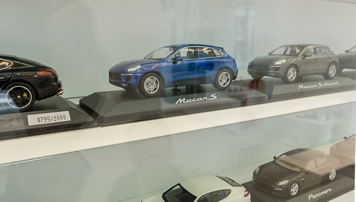 There were several walls full of miniature models on display. The model cars were not available for sale. They serve a documentary purpose.
