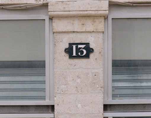 We are not superstitious about the number. We just happen to live at No. 13 now and used to work at Room 1313 on the 13th floor. I(Chris) am just curious of the other No: 13’s – how they look and what’s behind them.