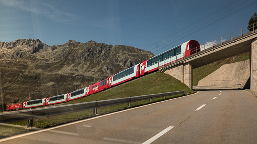 The tourist train with panoramic windows and catering onboard runs a 8-hour journey from Zermatt to St Moritz covering a 290-km length that includes 91 tunnels and 291 viaducts. This train is the best option to see this area without driving. We might use it to see areas that are not reachable by car in the future. Highly recommended.