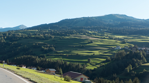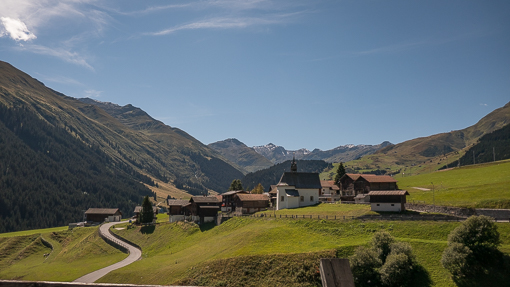 We took Hauptstrassen 19 running alongside the river Vorderrhein (which feeds into the Rhine) to Flims, crossing the canton border from Uri to Graubünden, and passing through a string of picture-perfect villages.