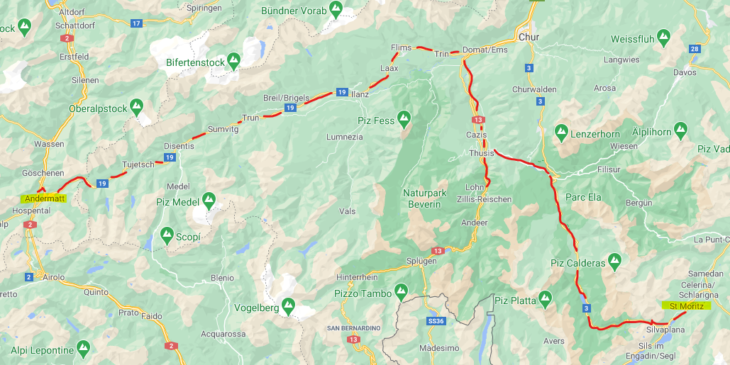 On our second day of this road trip to the Eastern side of Switzerland, we drove from Andermatt (after a detour to Airolo and St Gotthard pass) to St. Moritz.