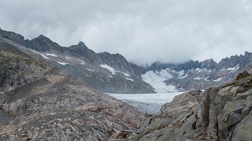 In 120 years, the glacier has regressed, presumably due to climate change, upwards to a point where we took these pictures next to Hotel Belvédère.