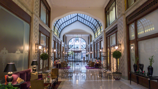 In 2004, after a five-year $110-million restoration, the Hotel was unveiled. Some of the Hotel’s outstanding features are a two million-piece mosaic tile floor, a grand, sweeping staircase, stained-glass floors, and a wrought iron elevator that have each been lovingly restored or replicated when preservation wasn’t possible. In the process of reconstruction, the Hotel was also completely modernized, adding amenities like an indoor lap pool, spa, fitness facilities and all the latest internet and entertainment equipment.