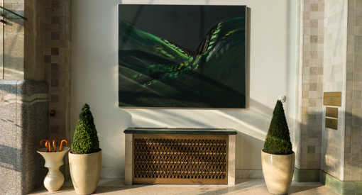 The stained glass ceiling, skylight and sculpture in the lobby was stunning at dusk – the cool residual winter sunligh mixing the warmer interior lights.