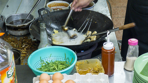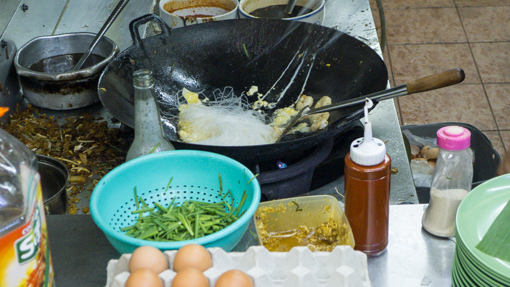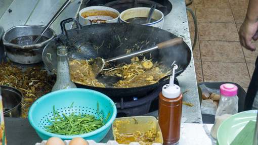 Mix in some chives and bean sprouts, and let the whole lot be cooked.
