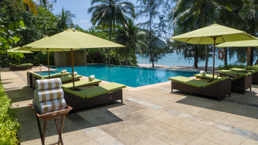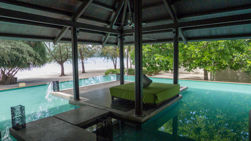 On the left are a series of discreet treatment rooms in a bungalow and a small swimming pool.