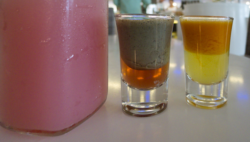 At breakfast, two different healthful smoothies-juice drinks everyday.