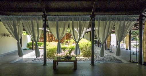 A gentle breeze caused some leaves to fall and row gently down the sloping roof of the bungalows. Dried leaves rustled on the ground. Birds chirped occasionally nearby. One can become relaxed simply by being there, even without any treatment.