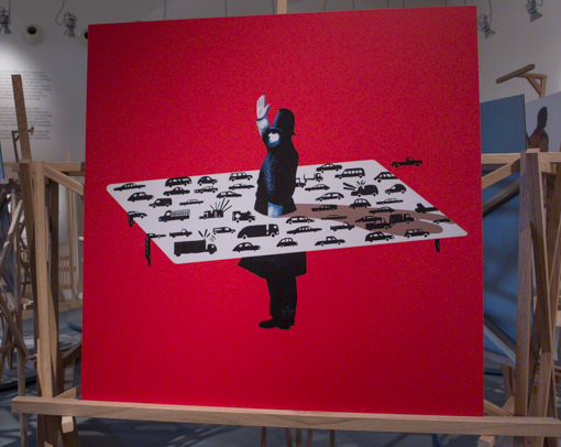 The specially commissioned graphics poster were displayed on a platform with slowly rotating easels.