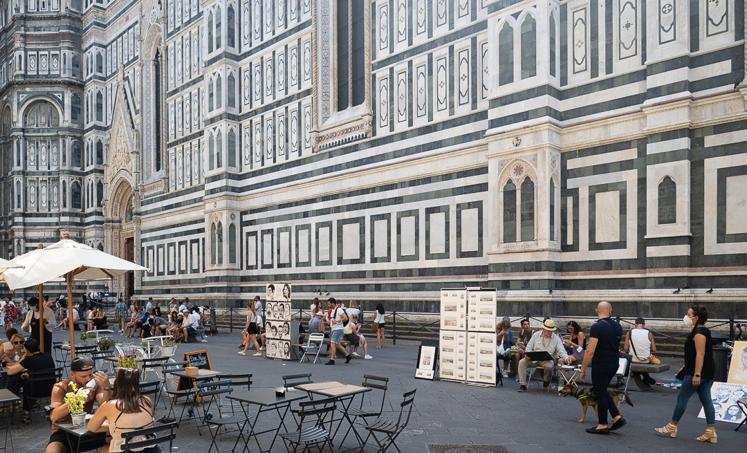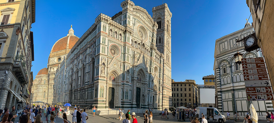 The cathedral of Florence (il duomo) is one of the most recognizable landmark worldwide. Situated in the heart of Florence, the cathedral forms a complex with the Baptistery and the Campanile at the Piazza del Duomo. These three buildings are part of the UNESCO World Heritage Site encompassing the historic center of Florence.