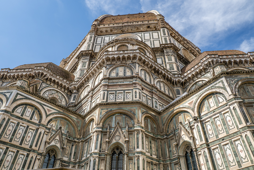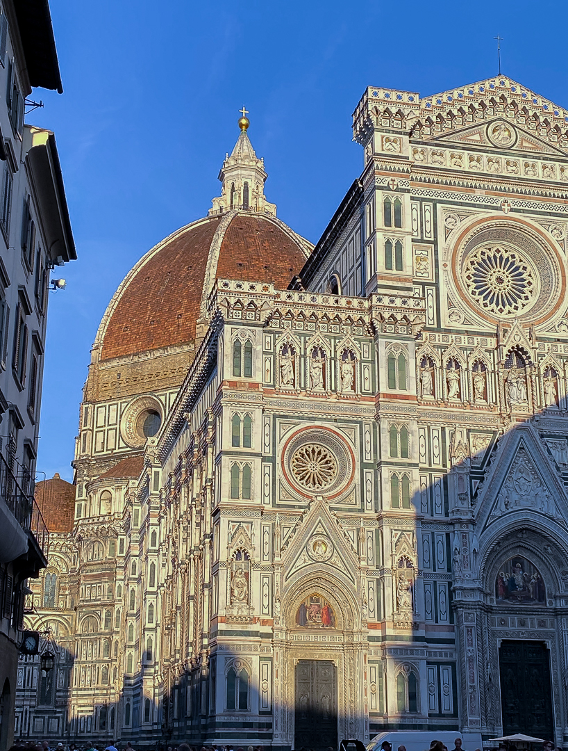 Officially, il Duomo is formally known as the Cattedrale Santa Maria del Fiore (Cathedral of Saint Mary of the Flower). According to Wikipedia, the word ”duomo” derives from the Latin word domus, meaning “house”, as a cathedral is the “house of God”, or domus Dei. An alternative etymology is that the word derived from “house”, but “house of the bishop”.