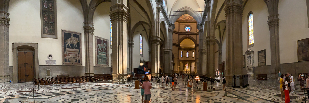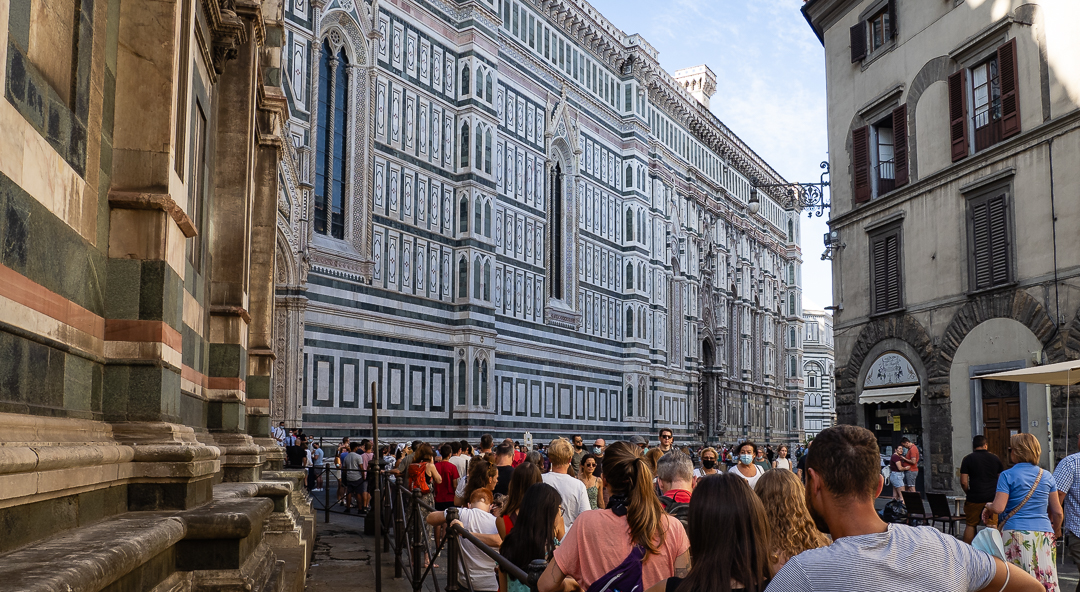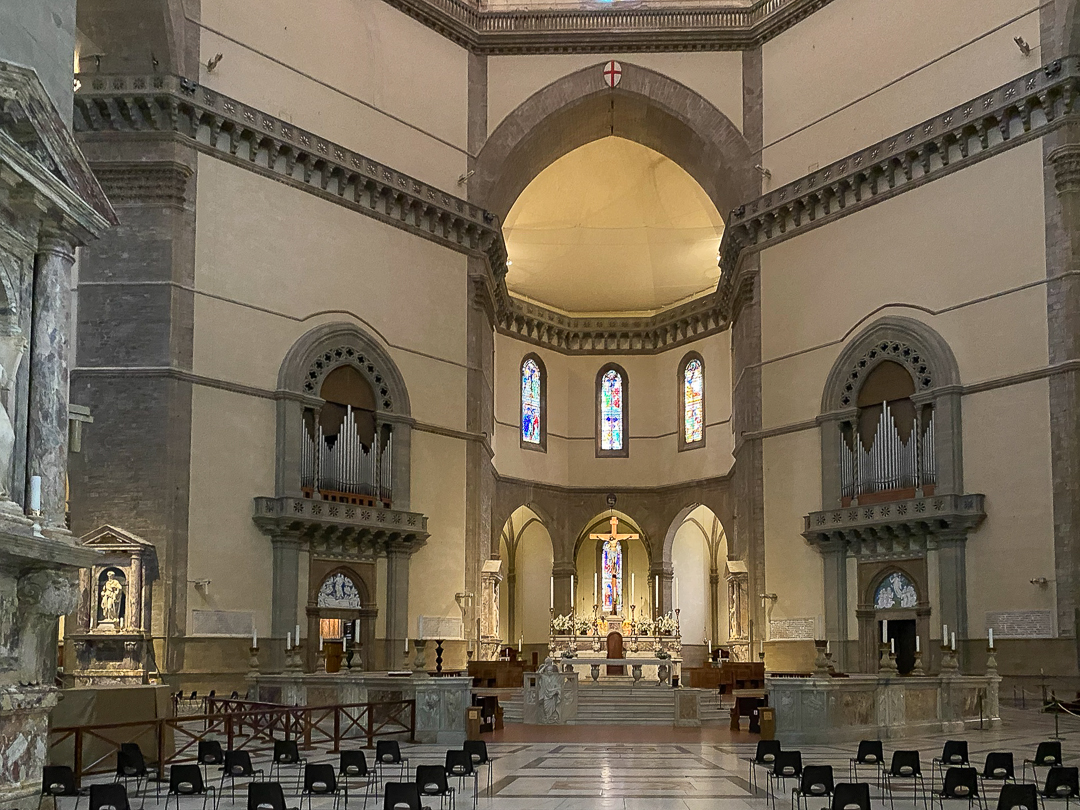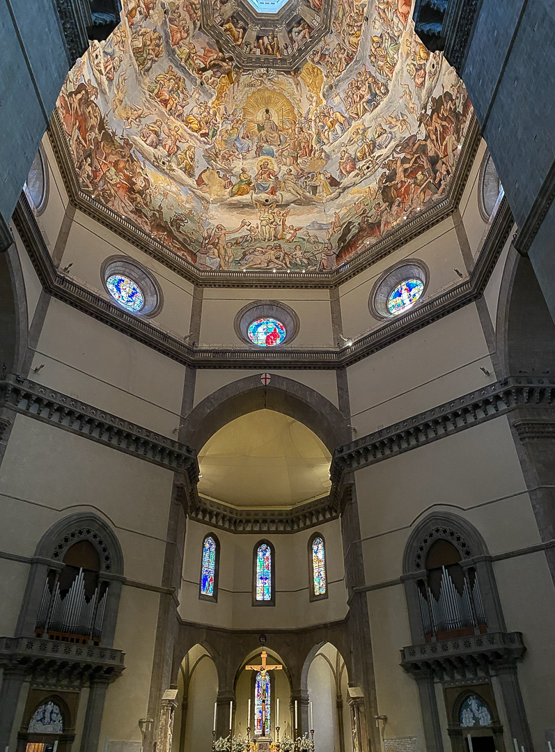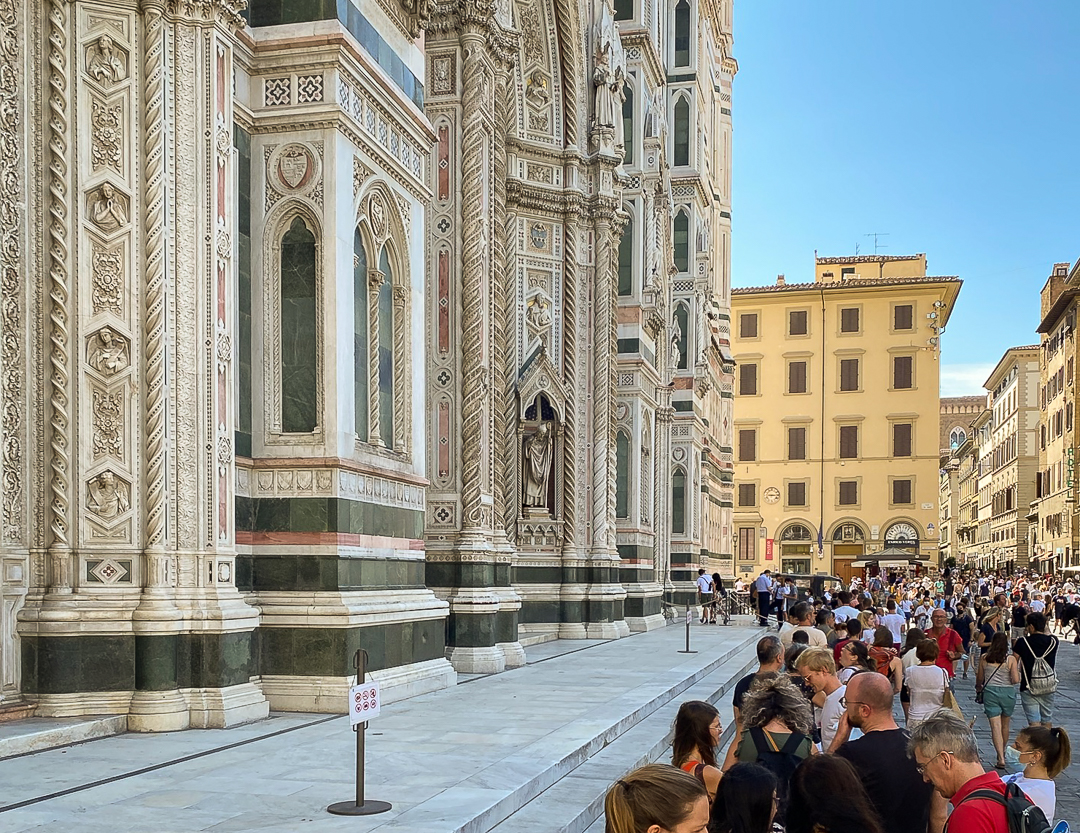 Whenever we walked past il Duomo, there was always a long line waiting to enter, and another long line waiting for the climb up 463 stairs to the dome. There is no elevator to the top, unlike the duomo in Milan (see our post on Milan’s cathedral).