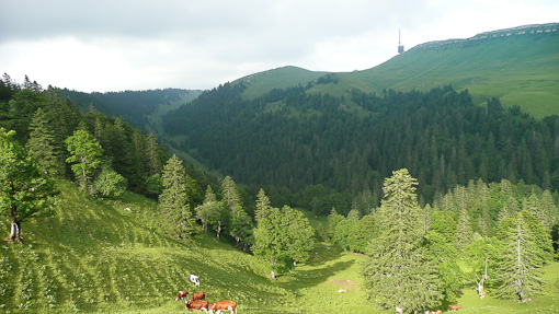 At the top of La Chasseral is a directional radio tower owned by Swisscom.  In fact, one can see this Star Wars-like installation from miles away.  There is a path that leads to the base which offers a panoramic view of Swiss Alps, Northern Jura (above view), the Vosges and the Black Forest.  I got the picture above from Wikipedia since it has the hotel and the tower in the same picture.  The pictures below are all mine.