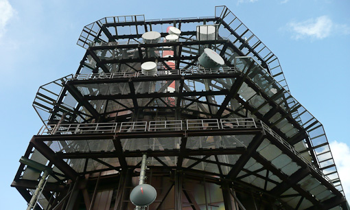 It must be the highest thing (1607m, 5272 ft) around for many miles and must be struck by lightning frequently. I wondered how it handles the electrical energy from lightning and remains functional as a transmitter.  Someone must have pictures of it during a lightning storm but I can’t find it by Google Images.