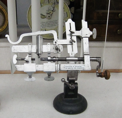 In the same windows are antique watching-making instruments. While I am not a watch freak, the tiny instrument are interesting and appealing – I also wondered who made these instruments.