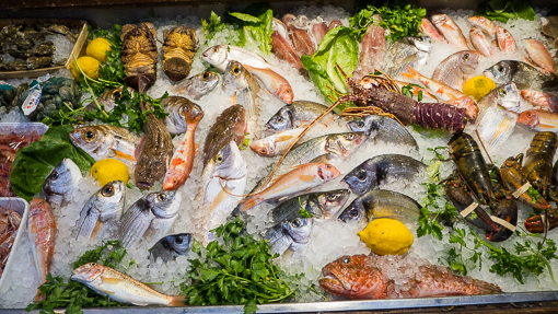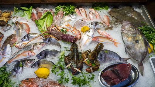 The day’s catch was very attractively presented on the iced table at the entrance.