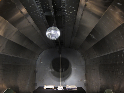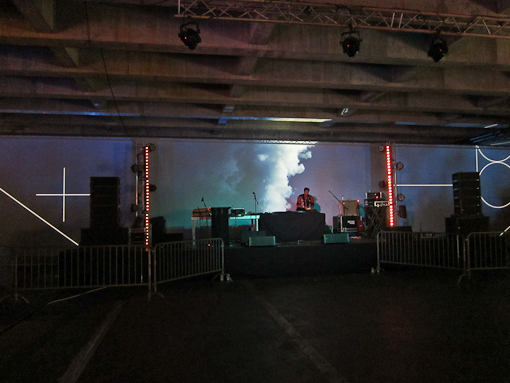 The railroad tunnel was obviously blocked off. The stage was at one end of the tunnel with three wide screens. This is the other end – can’t help thinking about Batman’s cave.