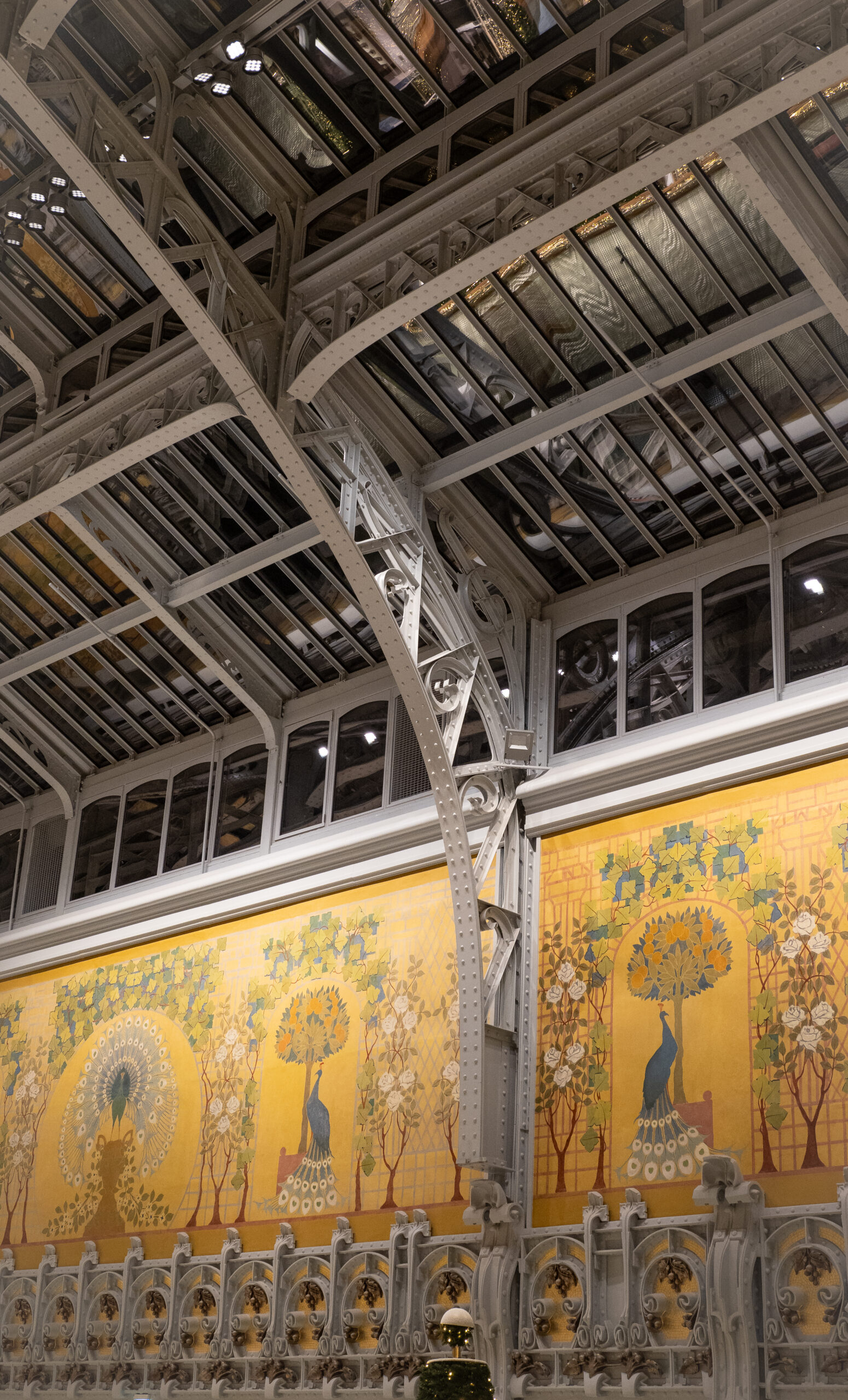 The most eye-catching feature here is the meticulously-restored peacock frescoes that adorn the periphery of the entire top floor. The frescoes line the base of the metal and glass skylight which brings natural light into the atrium.