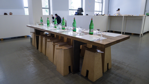 I had lunch at their cafeteria –  it was a communal table (hence, the 6 bottles of mineral water) and I sat on the most uncomfortable stool in my life. The design effectively kept people from sitting around taking up space.