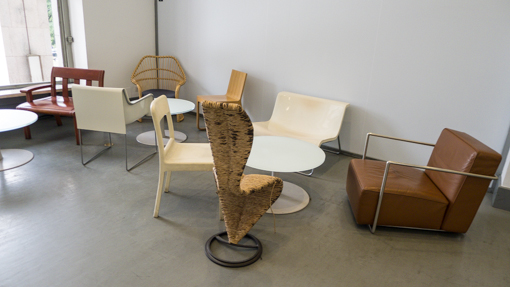 But the cafe also had some interesting antiques in a corner for patrons to use. While they might be design classics, they do not exactly look comfortable.