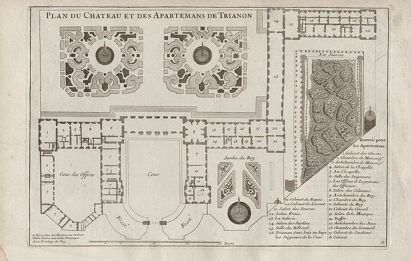 The Grand Trianon is another palace within the grounds of the palace of Versailles that we visited. It turned out to be a great escape from the horde of tourists. Plan du Chateau, courtesy of Wikipedia.